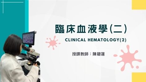 課程名稱:臨床血液學(二) 學分數及修別: 2 學分/必修 修課週數:18週 課程說明:本課程聯結課程地圖,於四技三年級開課,學生具臨床血液學(一)的先備知識,並藉由融入創新教學導入教學實踐,輔以醫學倫理素養,建構於人文與技術雙成,增進學習與實務成效。